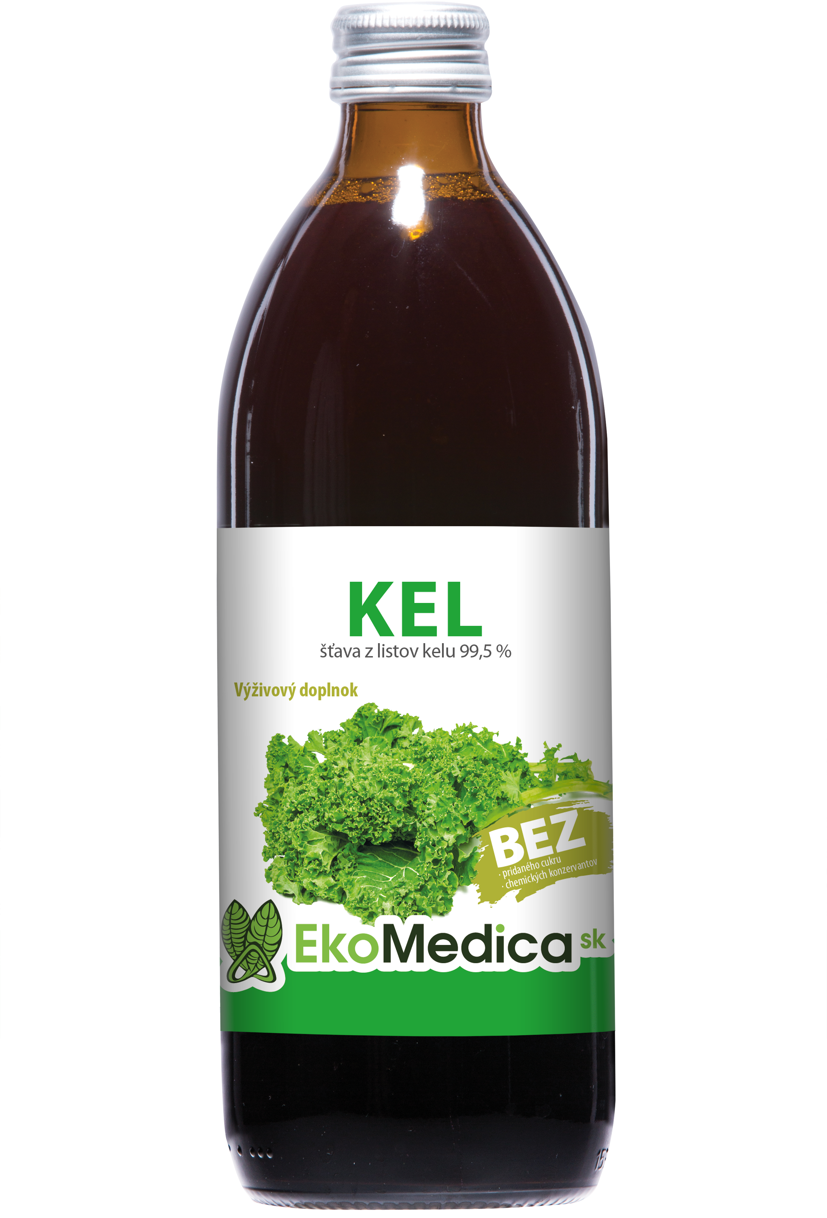 Zloženie: šťava z listou kelu (Brassica oleracea L.var.sabellica L.), 99,5% vyrobená s použitím vodnej extrakcie, štandarizovaný extrakt z plodov camu camu( Myrciaria dubia) 0,3% vrátane prírodného vitamínu C, regulátor kyslosti – kyselina citrónová . Pasterizované šetrnou pasterizáciou. Denná dávka 50ml obsahuje 150mg štandarizovaného extraktu z ovocia camu camu, vrátane 15 mg vitamínu C, čo predstavuje 18% RVH.