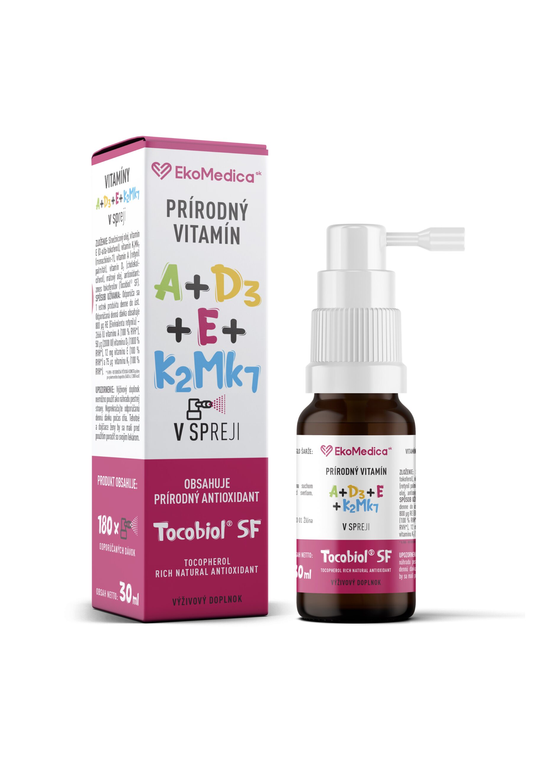 Home Prírodné vitamíny a minerály Vitamíny A+D3+E+K2Mk7 sprej EkoMedica SK